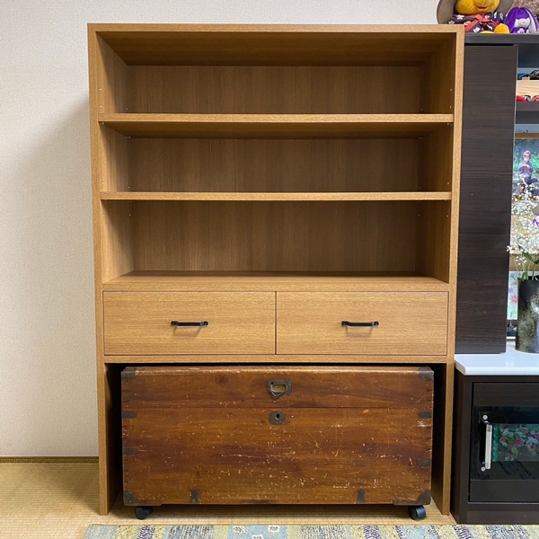 年代物の長持を改良して、オーダー収納と組み合わせました。Lim:Stuff。