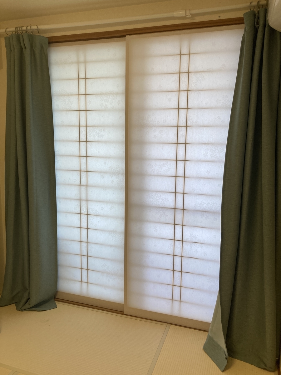 オーダーカーテン-障子の前にカーテンをつけたいふとんのとみなが。