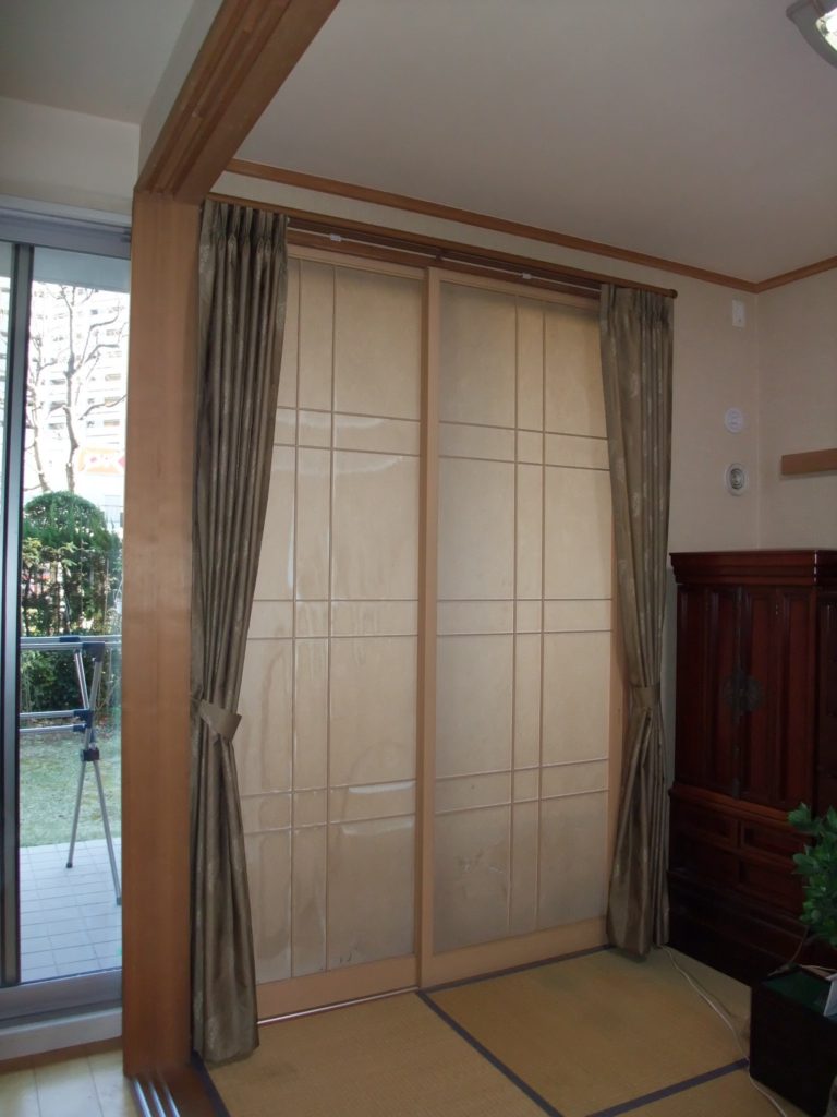 和室障子を外してカーテンを付ける愛知県名古屋市のオーダーカーテン専門店カーテンハウスシルクみどり店。
