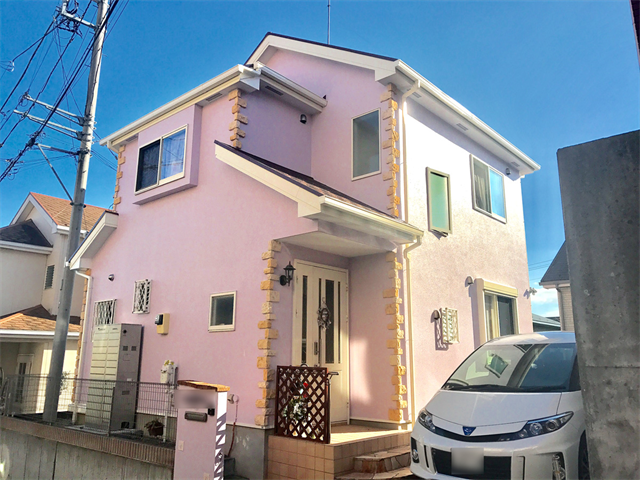 ピンク色のK様邸を外壁塗装!メルヘンな住宅がピカピカに! 東京都稲城市 簡単ネット注文の外壁塗装ならいえふく。