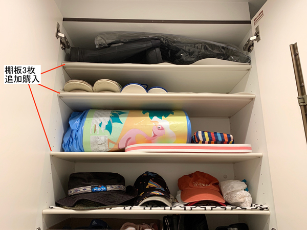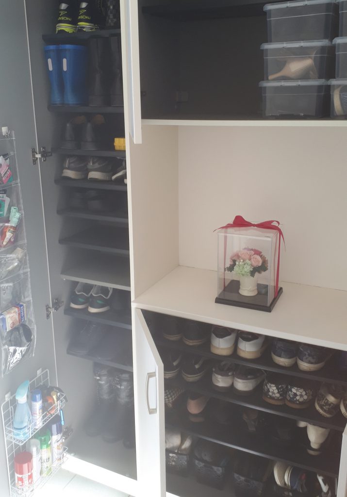 簡単!100均グッズで140円で下駄箱の棚板を追加する方法 棚ダボ&カラーボード使用DIYオトナ女子日記♡。