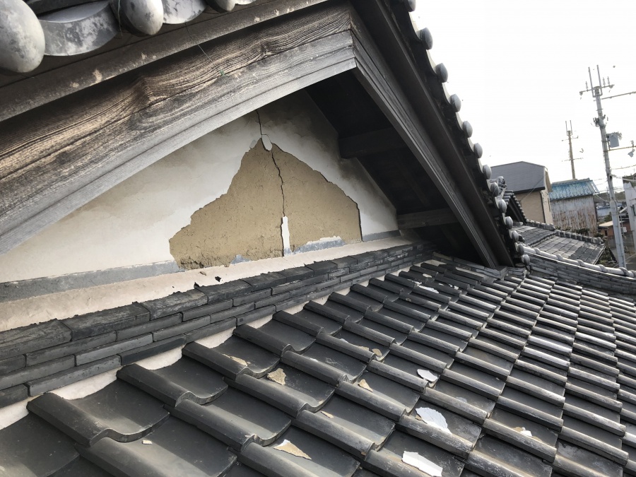 入母屋造りは雨漏りに注意!入母屋の妻壁部分は漆喰は剥がれやすい。