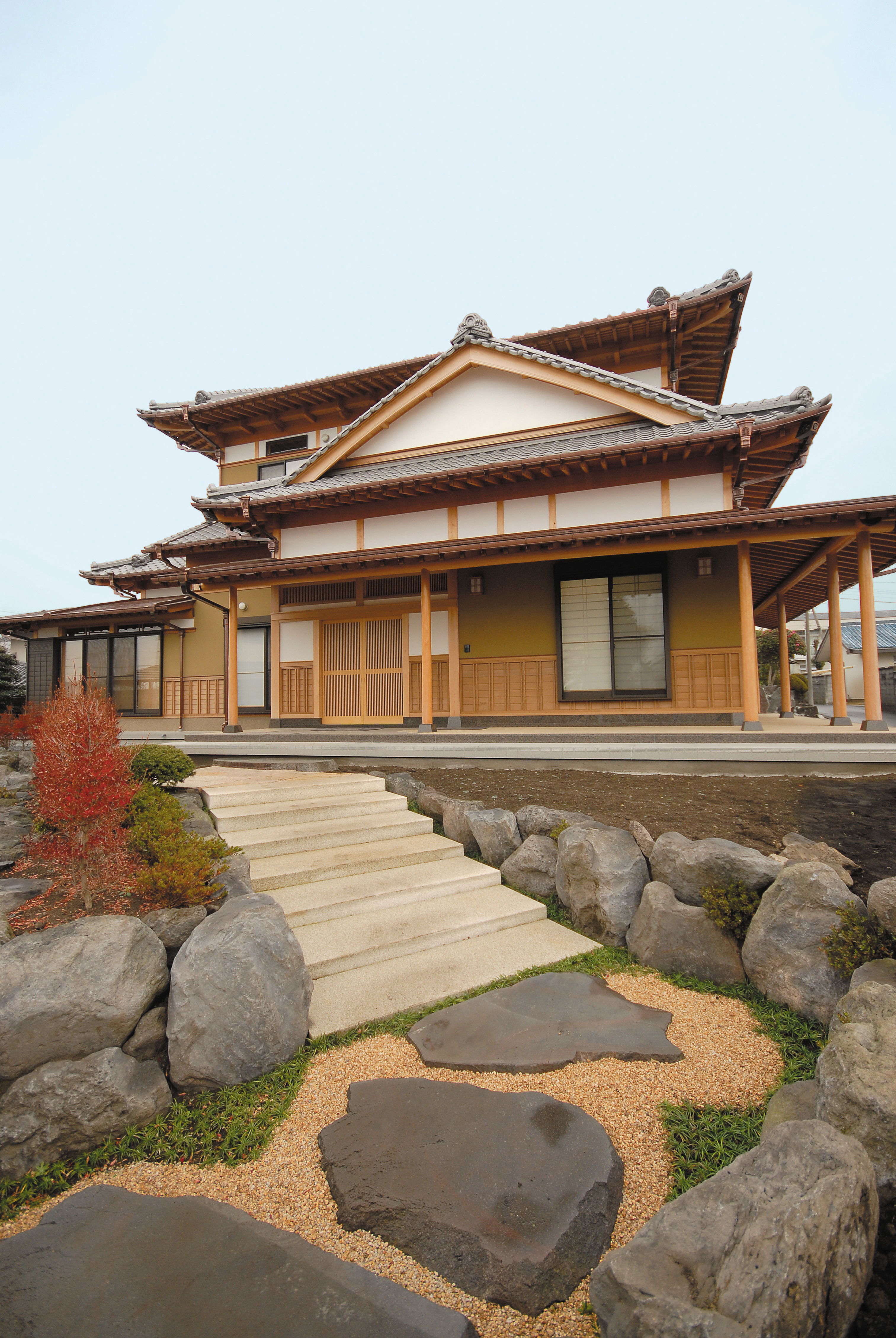 最先端免震装置を装備 純和風日本の伝統美入母屋造りかねと建設株式会社。