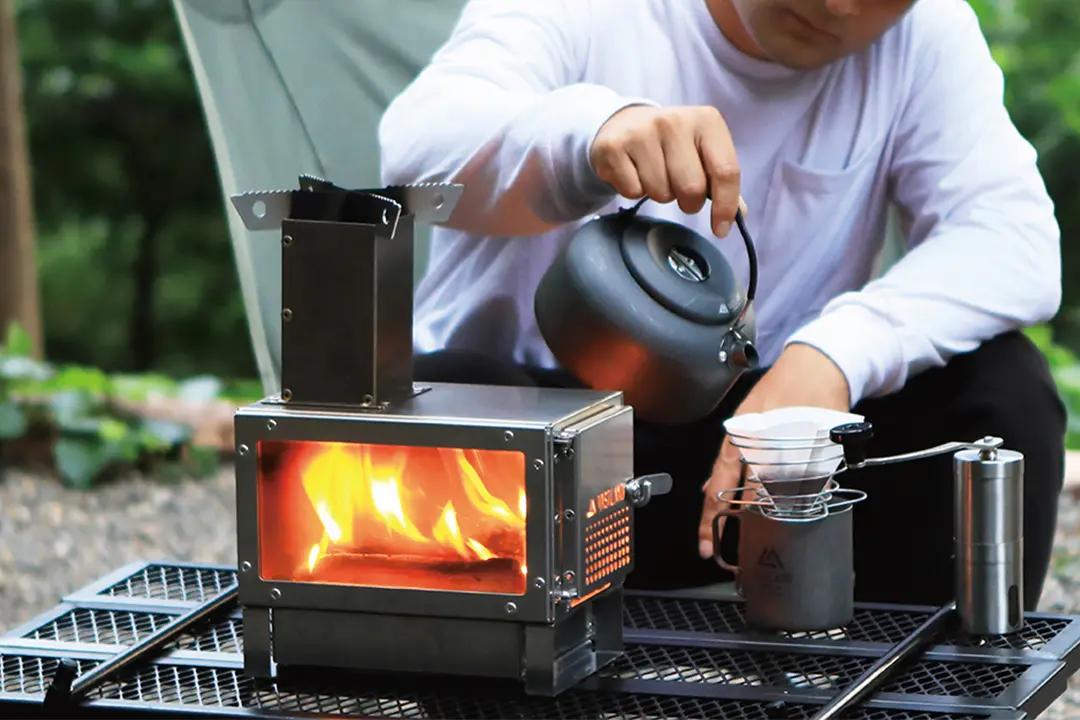 テーブルにも置ける「薪ストーブ」 テーブルに置ける、小型ながら本格薪ストーブでキャンプ。