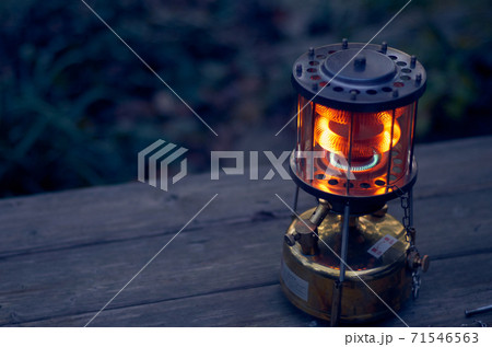アウトドアでテーブルの上で点火しているガソリンストーブの写真素材71546563- PIXTA。