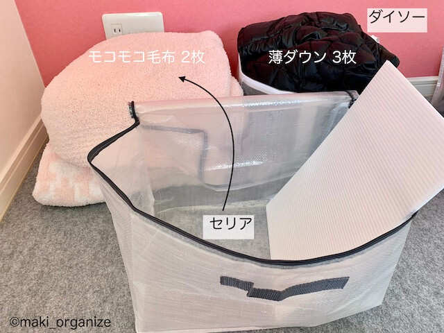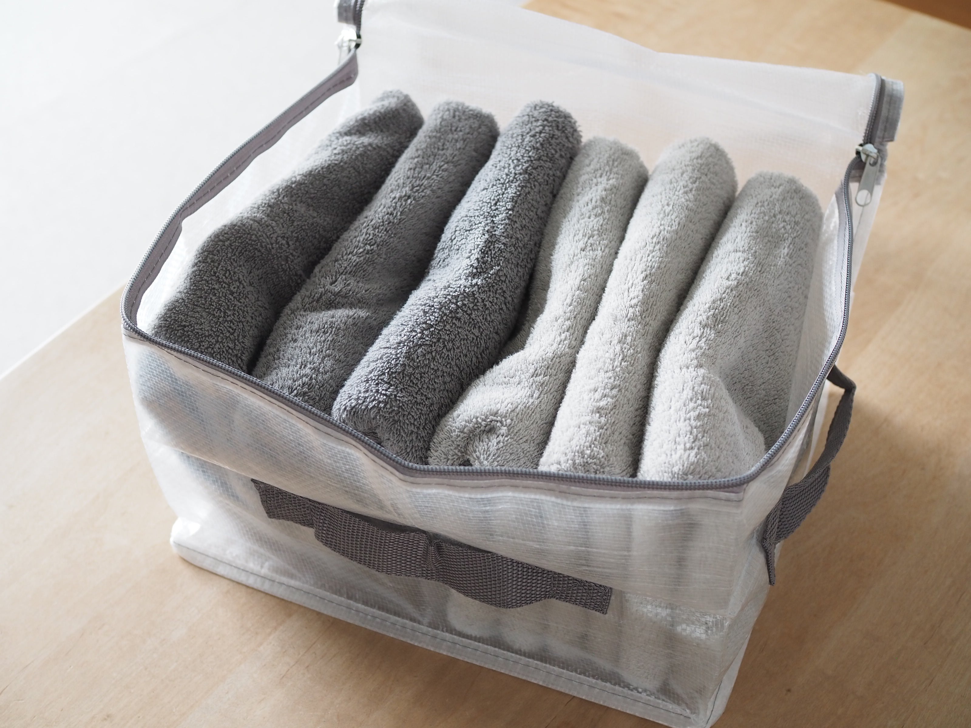 ダイソーの「大容量ケース」が買って大正解すぎた !分厚い毛布がすっぽり入るし、ガバッと開いて使いやすいの! 購入レビュー動画・画像。