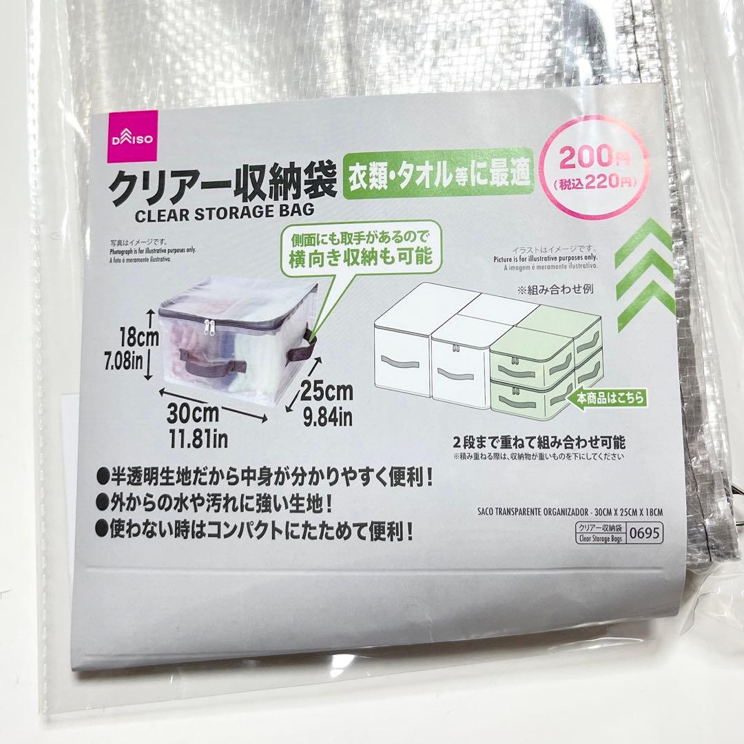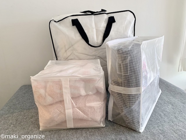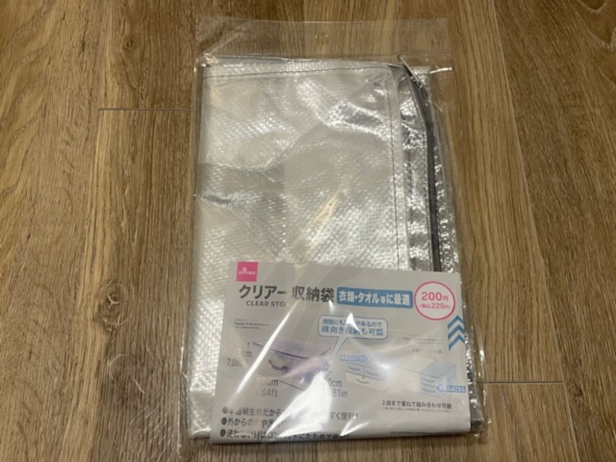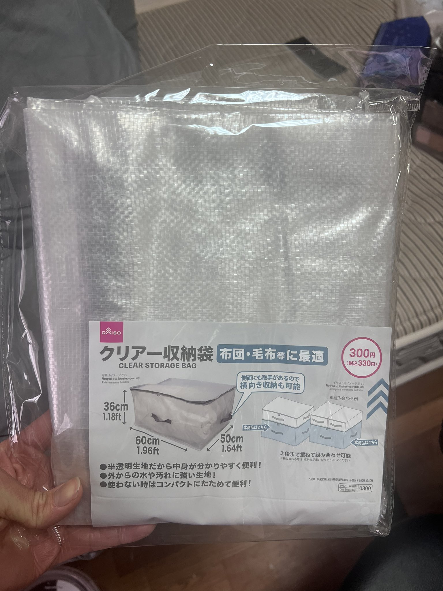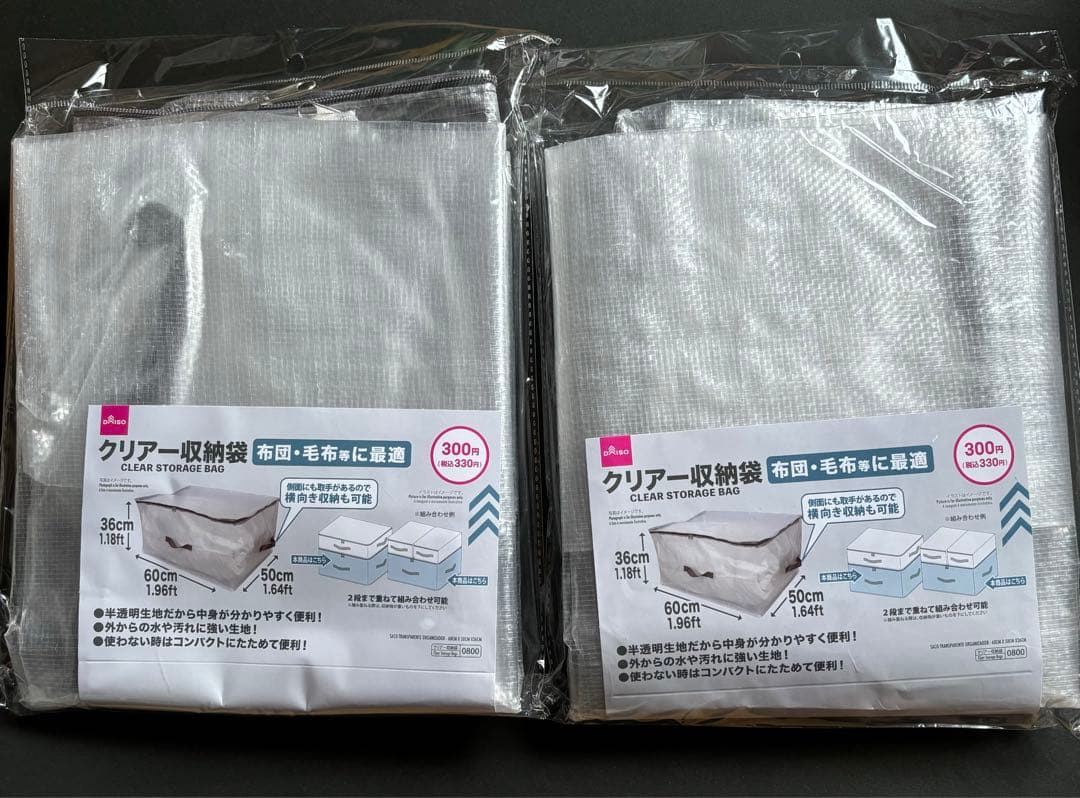 ダイソークリア収納袋DAISO50cm30cm36cm布団毛布衣類クローゼット押し入れ。