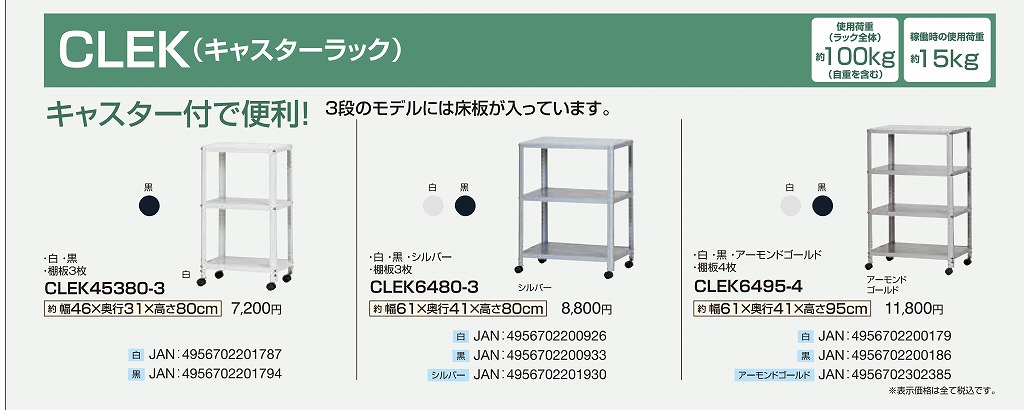 ダイソー キャスターラック3段 CLEK6480黒の通販スチール棚家具ホームセンターナフコ 公式通販。