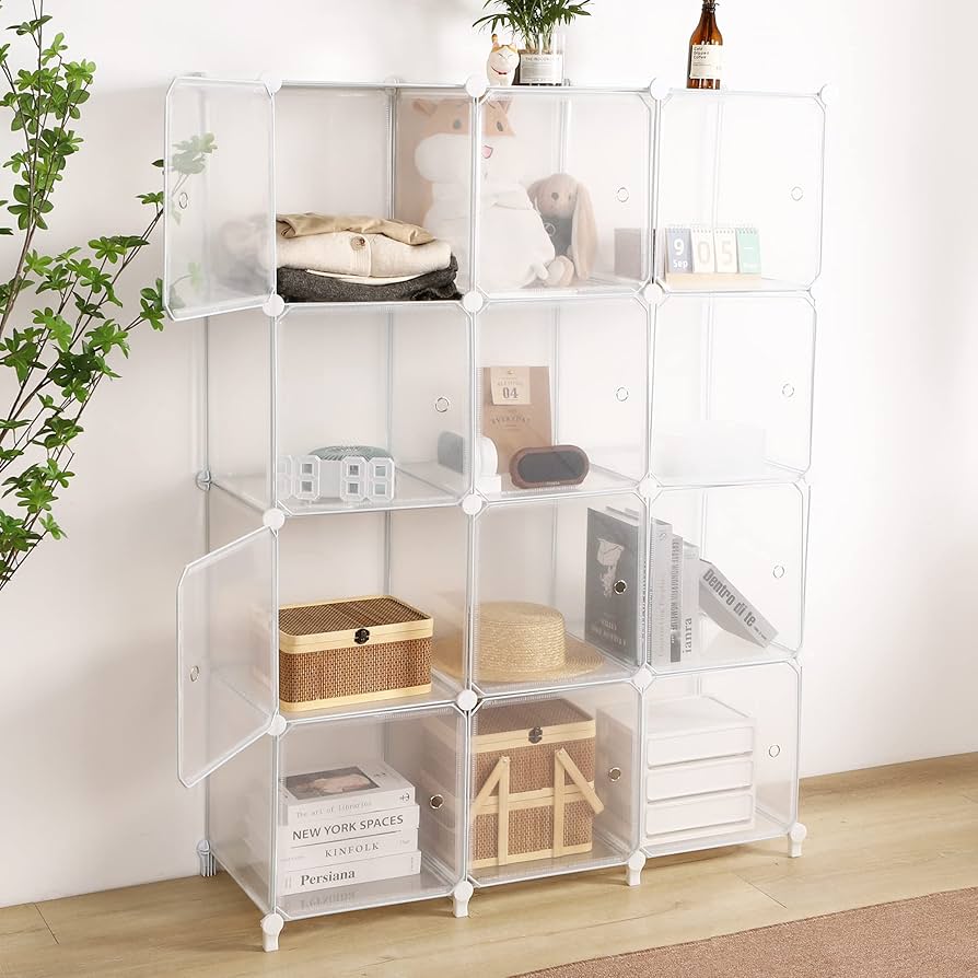 Amazon.co.jp:省スペース防塵収納ラック チチロバ TITIROBA収納棚 扉付き 収納 ラック 棚 見せる 簡単組立 大容量整理棚 洋服棚 収納ボックス クローゼット ワードローブ おしゃれ 省スペース 多用途 半透明 クリア ホワイト 12ボックス。