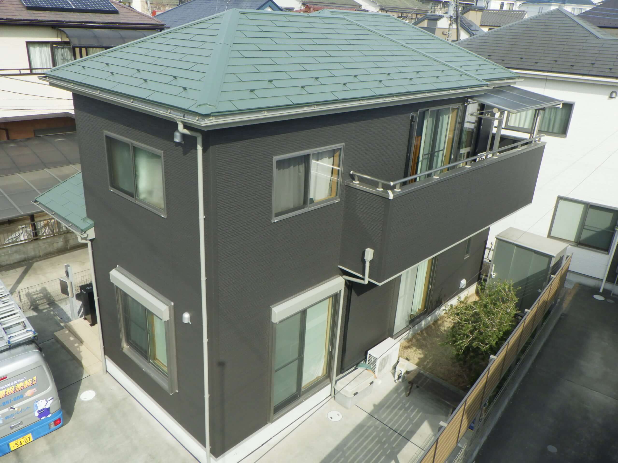 屋根カバー工事と外壁をダークブラウン単色塗りに❣愛知県西尾市K様邸愛知県西尾市・安城市の塗り替え屋本舗 愛知 644 施工データ 完工施工事例安城市、西尾市の外壁塗装&屋根TVCMでお馴染みの塗り替え屋本舗。