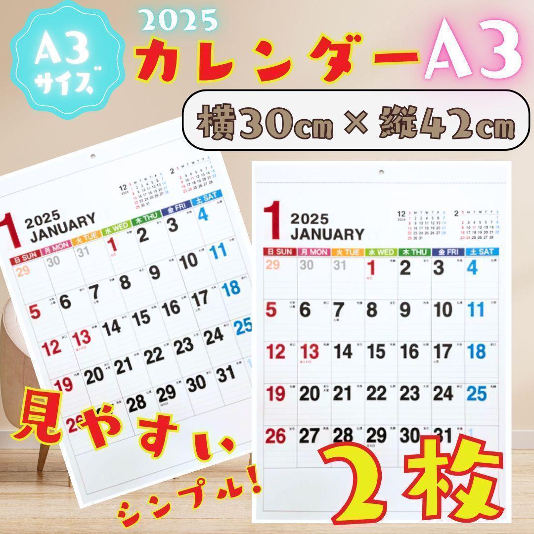カレンダー 2025 壁掛け A3 シンプル 書き込み 2枚 - メルカリ。