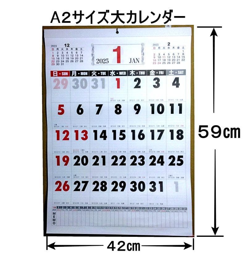 壁掛けカレンダー 2025 大判書き込み。