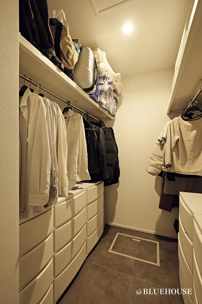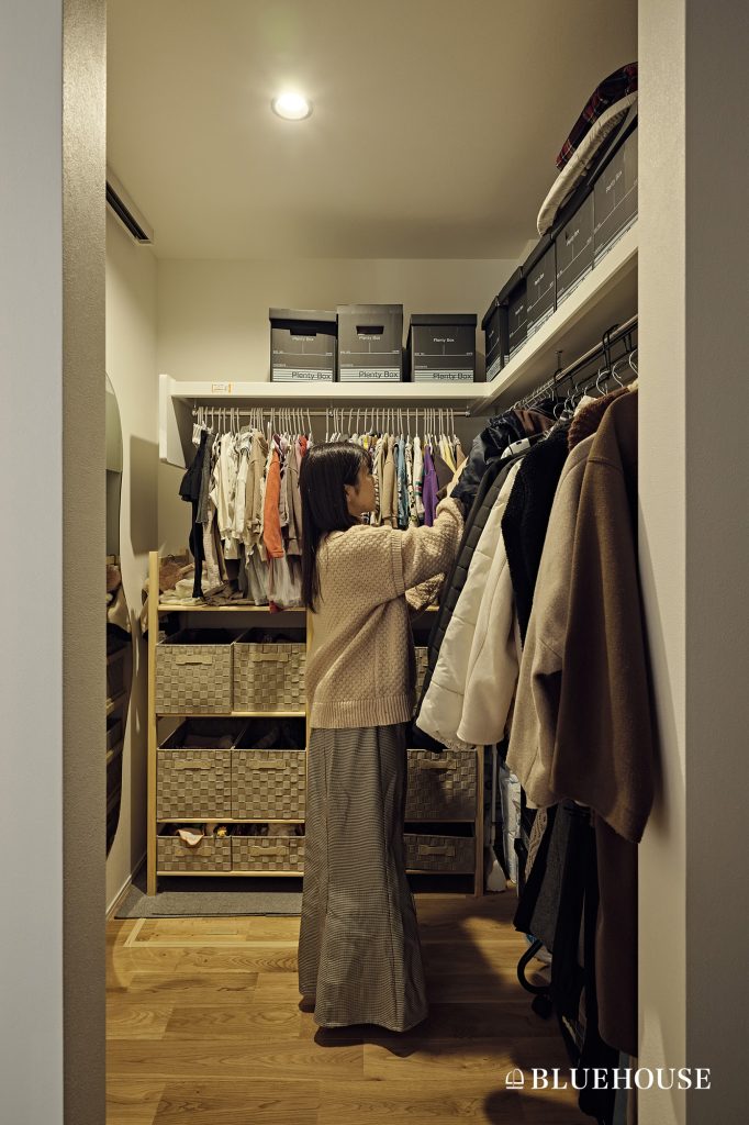 ウォークインクローゼット扉なしのメリット・デメリットを解説後悔しない解決策と目隠しアイデア、施工事例注文住宅ブルーハウスデザイン・性能・リゾートライフ、愛知、名古屋、豊橋、豊川、岐阜ならお任せください。
