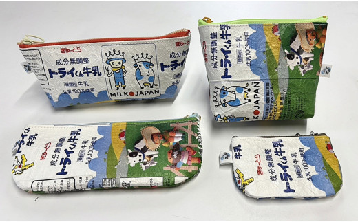 1773 牛乳パックのアップサイクル商品 福祉施設 障がい者施設 牛乳パック アップサイクル 手作業 手作り ハンドメイド ぎゅーとら トライくん小物 ポーチ ペンケース - 三重県伊勢市ふるさとチョイス - ふるさと納税サイト。
