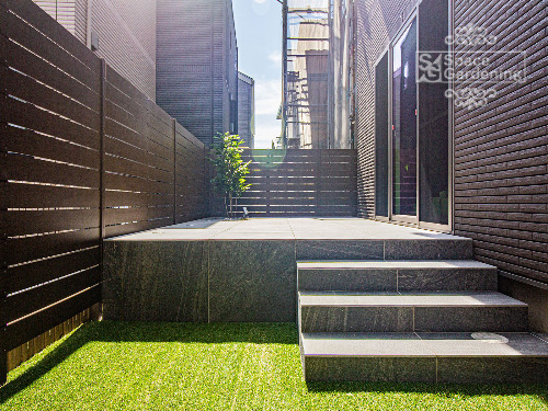 お庭のタイルデッキ・テラス雑草対策にもグリーンケアお庭と外構、エクステリアのデザイン&リフォーム。