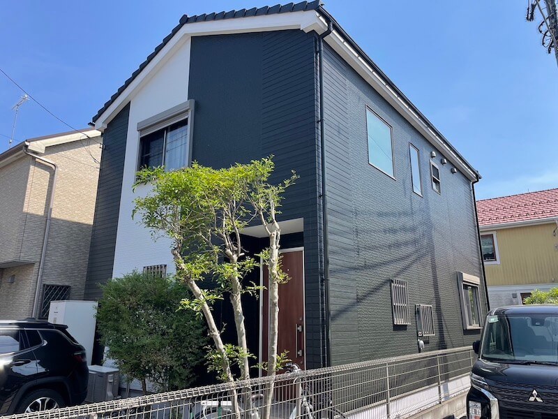 施工事例紹介 外壁塗装で印象一新!白からシックなチャコールグレーへ。