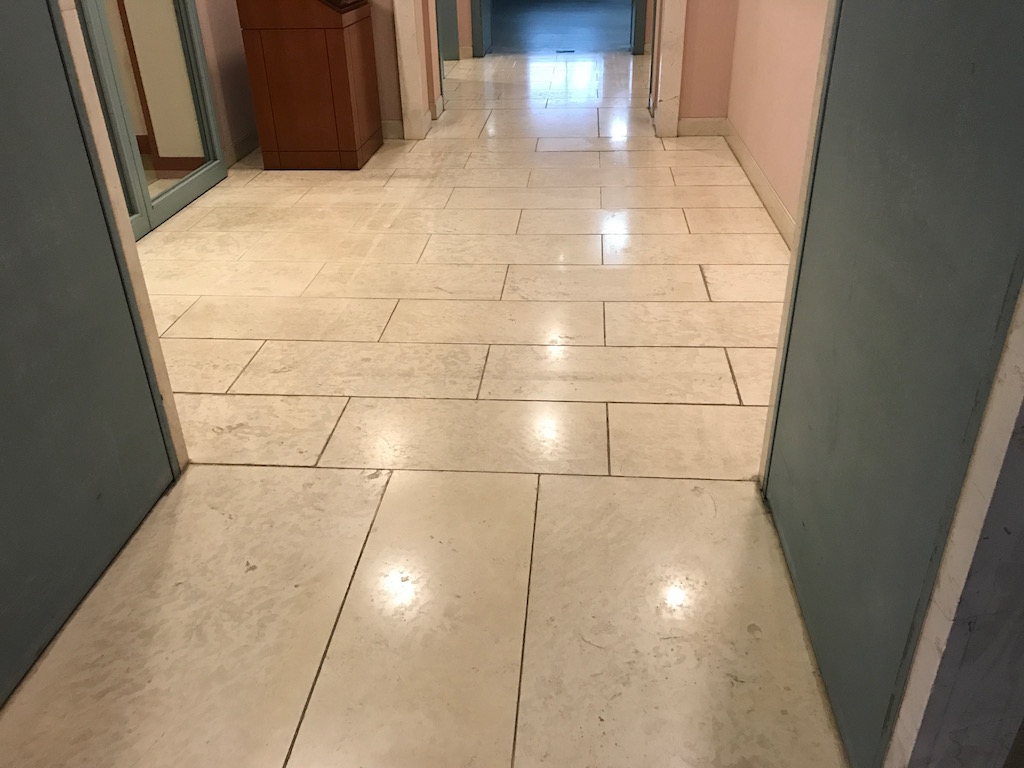ライムストーンの床石に染み込んだ油シミ施工例一覧石材メンテナンス・石材クリーニング専門 株式会社 ケイ・アンド・エス。