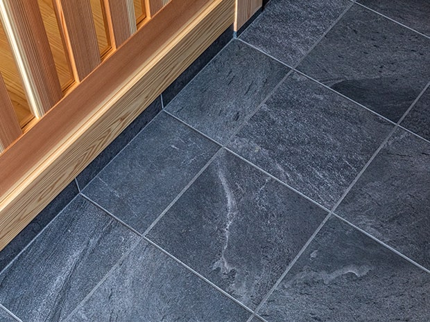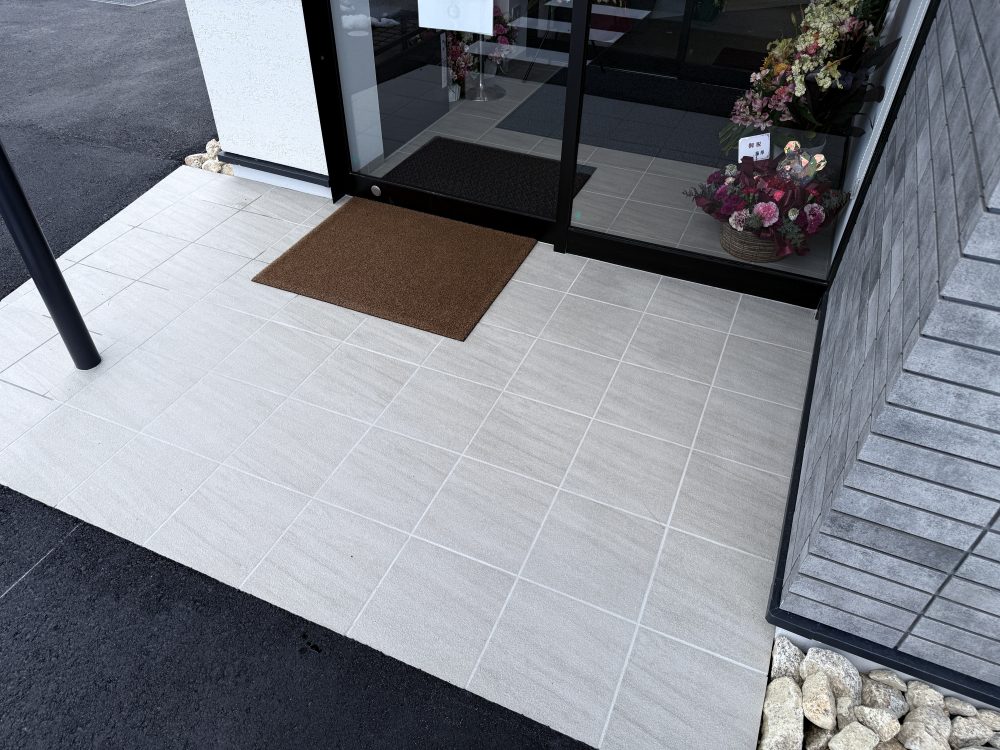 施工例:ライムストーン調のタイルで雰囲気ある玄関にタイル販売の専門サイトならタイルパーク。