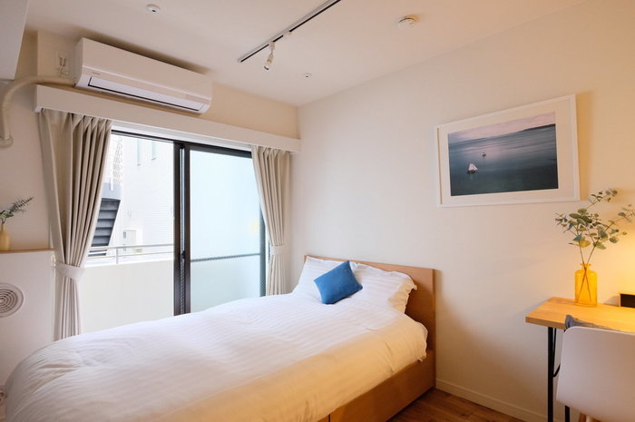 寝室4.5畳のベッド選びとレイアウト方法 シングル・セミダブル・ダブルベッドの実例付きa.flat 風が運ぶ、自然の贈りもの -目黒通り・新宿・大阪梅田 グランフロント北館。