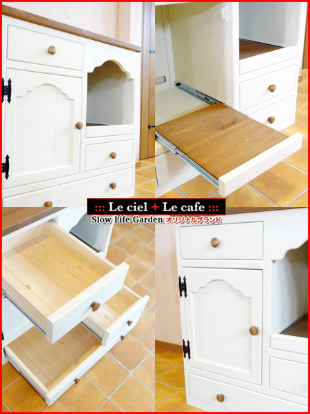 フレンチカントリーデザイン家電収納レンジ台モイス付き。