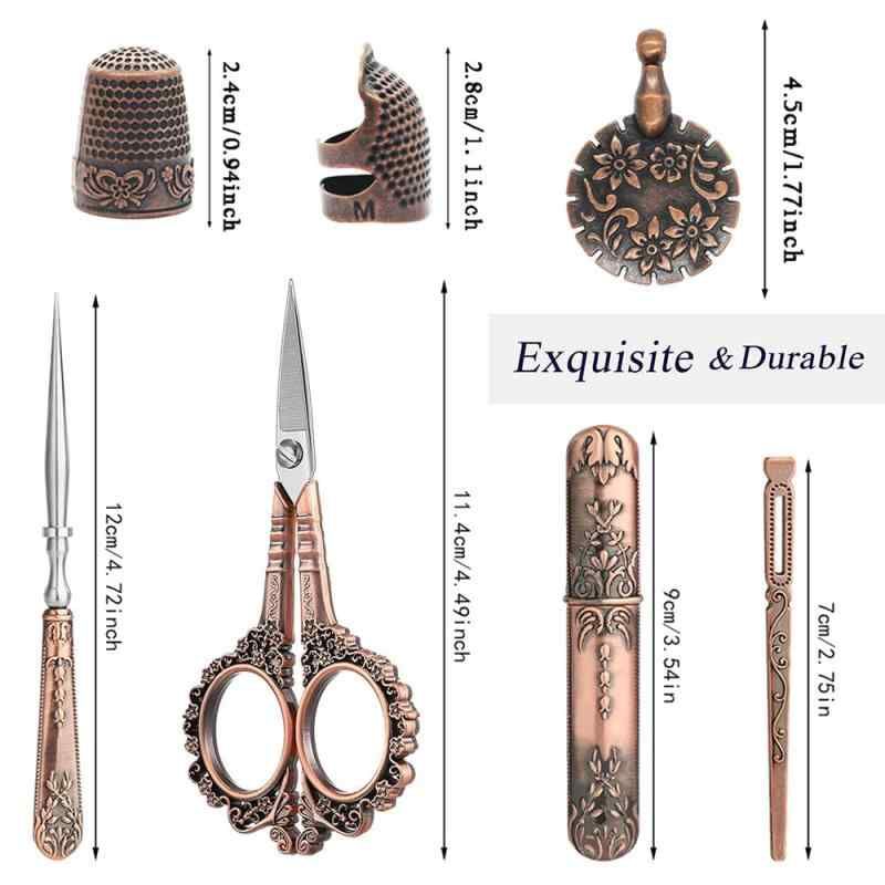ヴィンテージ刺繍はさみセット、ステンレス鋼の縫製キット、快適なハンドル付きの多機能縫製ツール、レトロなデザイン、縫製、刺繍、編み物、 ヴィンテージ 裁縫ハサミ ミニアンティークハサミ-JournalTale。