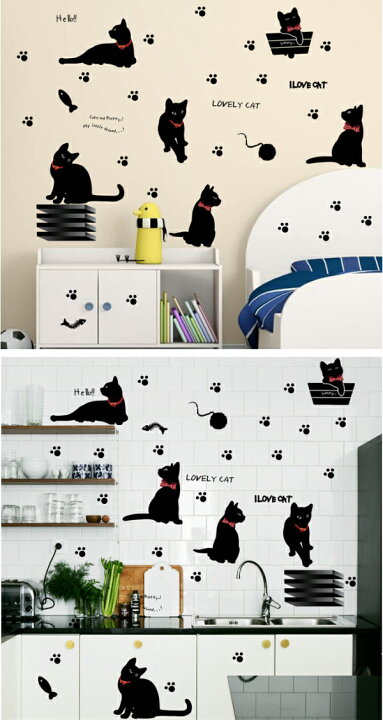 楽天市場 ウォールステッカー 動物 猫 黒猫 ねこ ネコ モノトーン おしゃれ カフェ かわいい キャット アニマル キュート インテリアステッカーウオールステッカー 壁紙 木 シール ツリー 魚 1000 猫好き 文字 リボン キャラクター cat アルファベット ボール 棚 足跡。