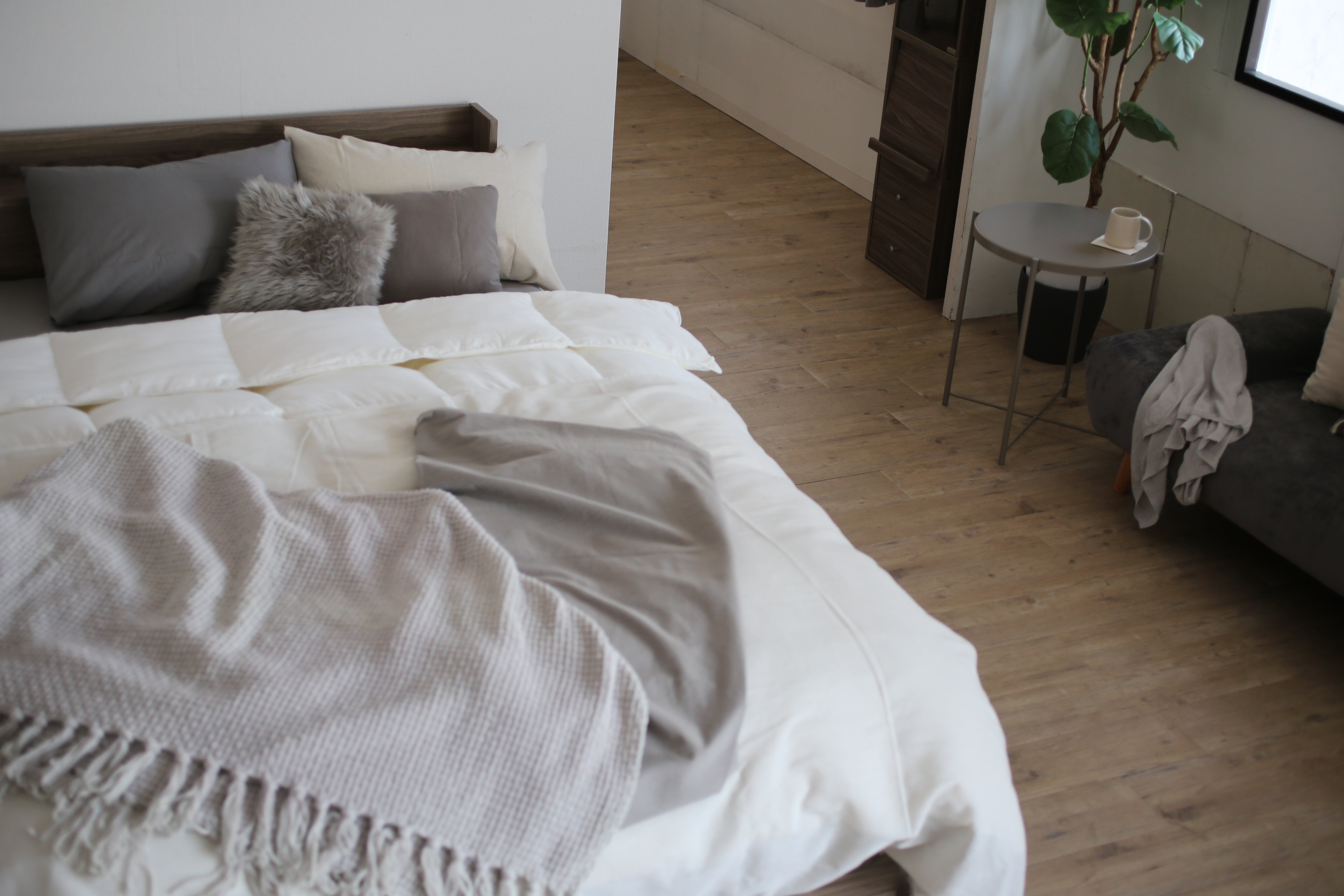 ベッドもグレー系がかわいい!おしゃれなグレーインテリアの作り方。