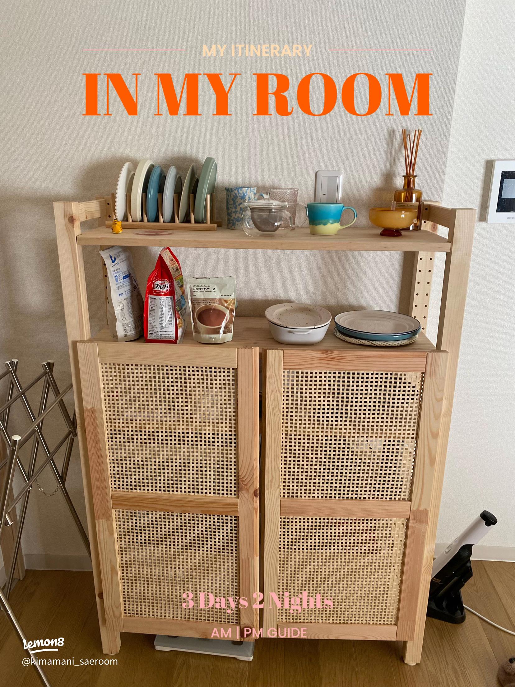 木製ツートン棚 見せる収納 扉裏は隠す収納に。