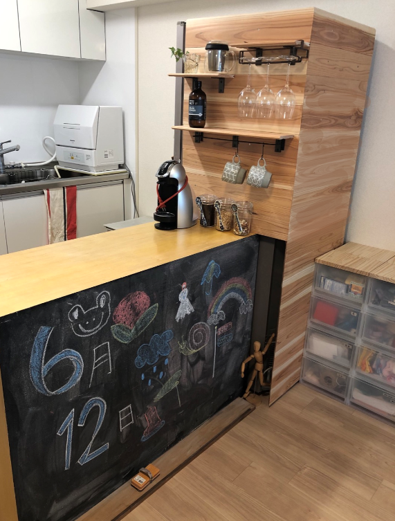 家具の背面まで愛そう。キッチンカウンターに有孔ボードを張り付けたったred log。