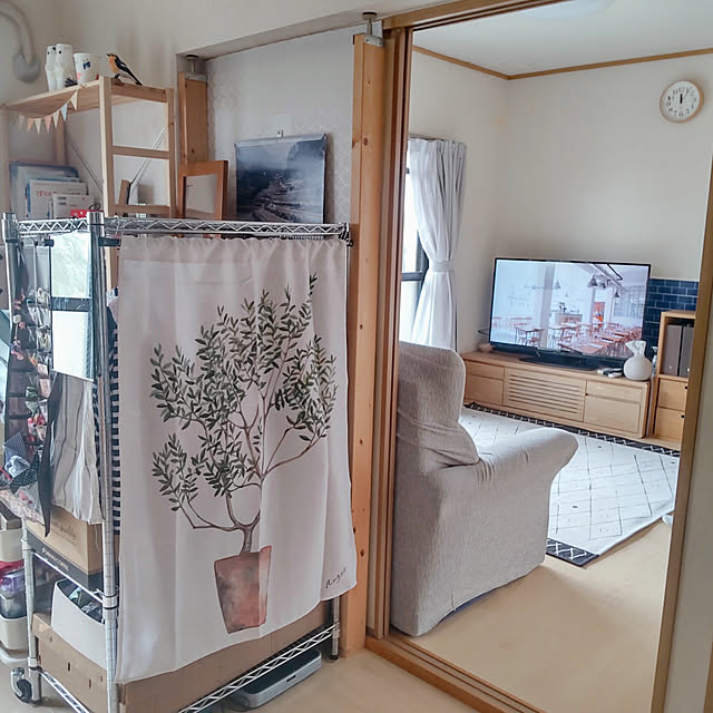 スチールラックの目隠しアイデア。ごちゃつかずオシャレに見せる方法。