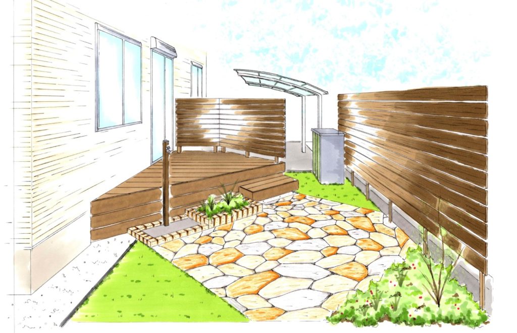 一軒家の庭をおしゃれにする7つのコツレイアウト実例や目隠しの方法もつくばガーデンイオンモールつくばエクステリア展示場。