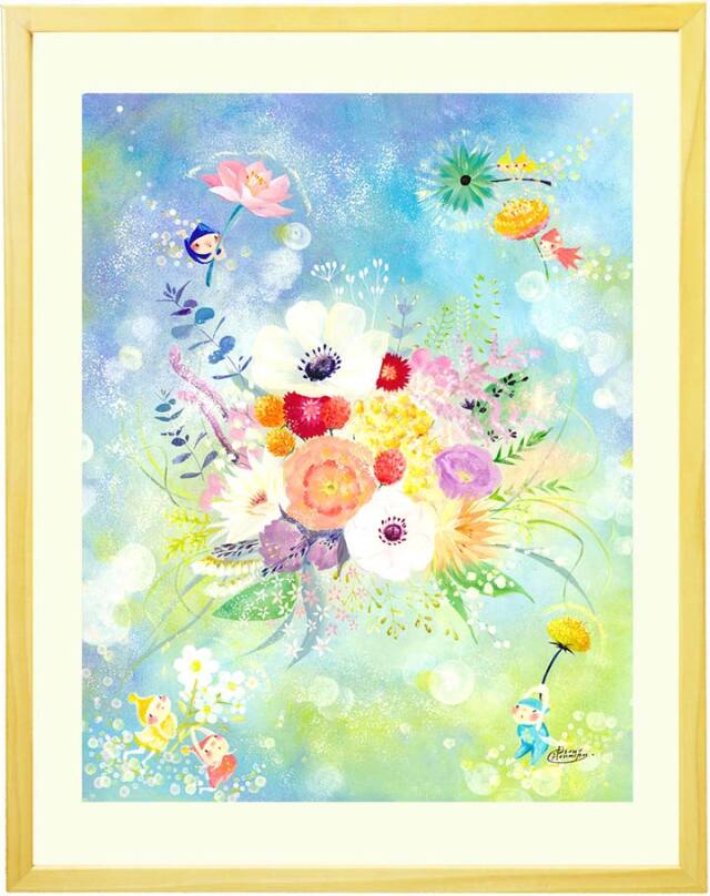 かわいいアート 絵画 「エール」 花の絵 壁 絵 妖精 可愛い絵絵画販売 KAWAII ART。