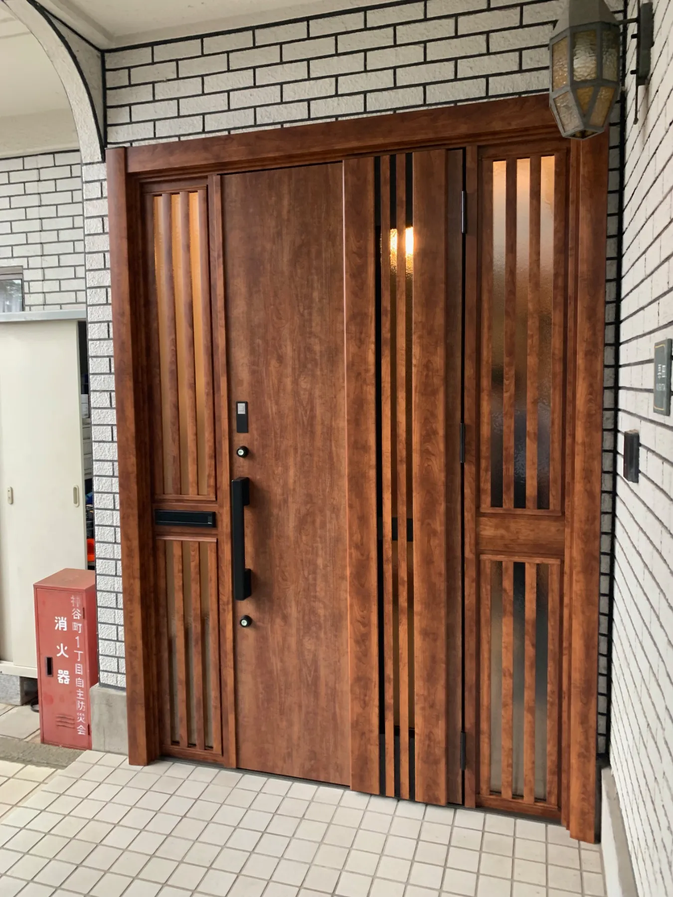 玄関の木製ドアをアルミドアに交換 - 品川区の建具屋 株式会社太明。