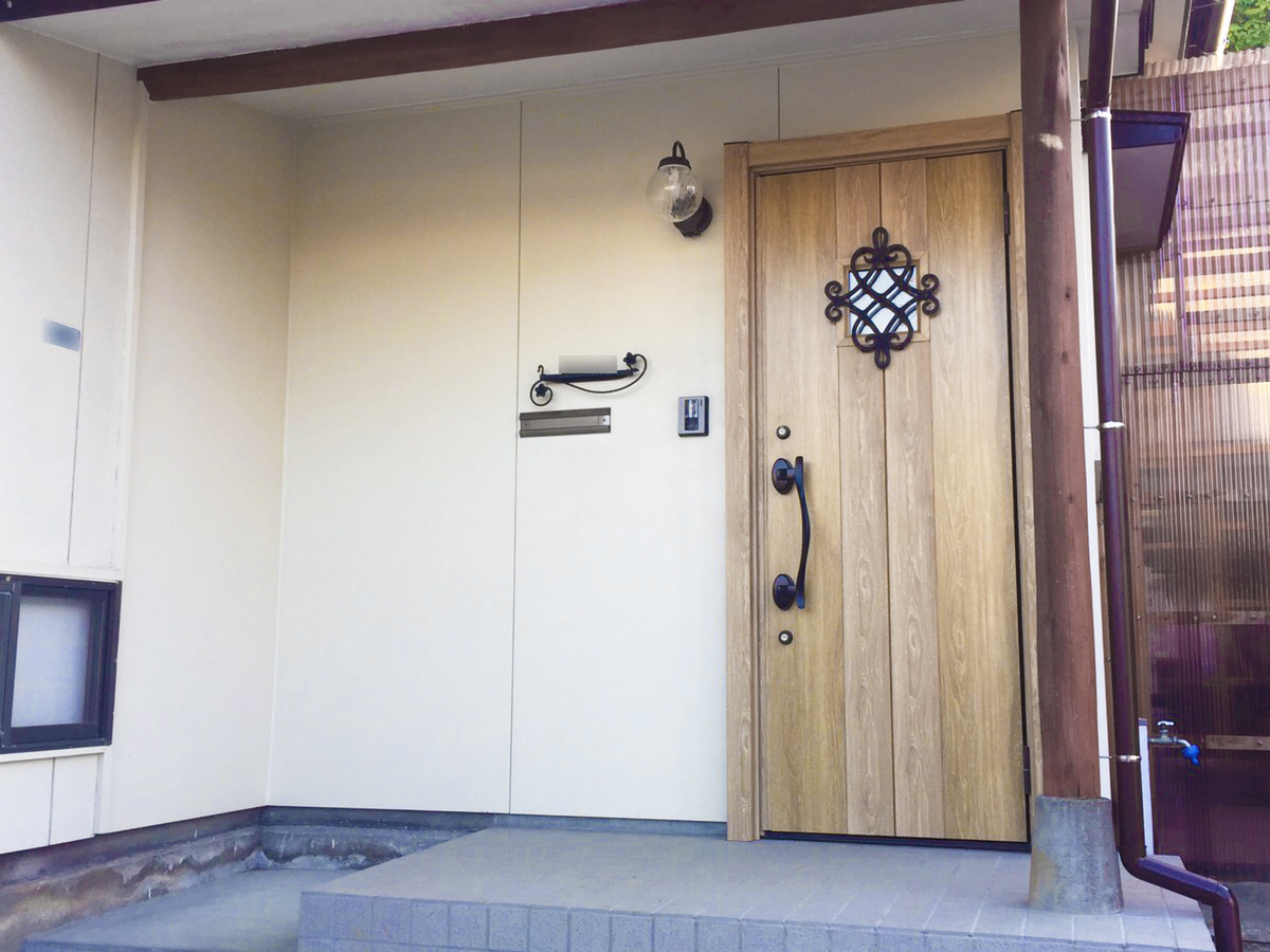 重たい印象だった玄関ドアを、木目調の玄関ドアに交換 › 島根県松江市のリフォーム・リノベーションならFROG POWER。