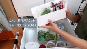 冷蔵庫収納 ニトリで片付け♪整理できる野菜室収納 整理バスケット キャニスタ。