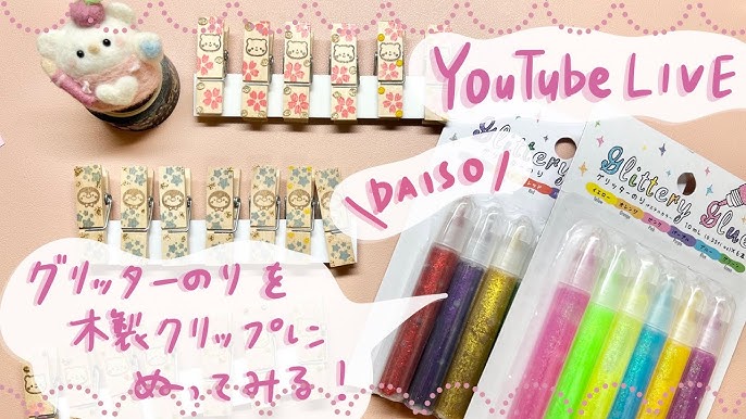 YouTubeライブ 木製クリップにグリッターのりを塗ってみるダイソ。