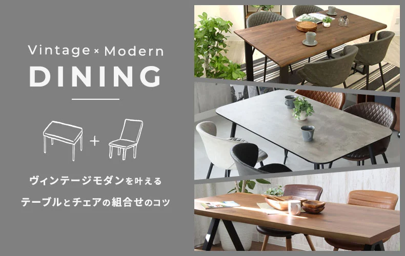 通販 おしゃれなヴィンテージモダンを叶える!テーブルとチェアの組合せのコツ。