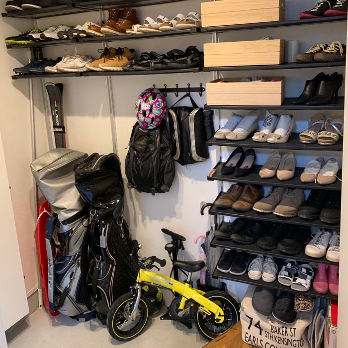 小学生4人と過ごすシューズクロークの収納アイデア。