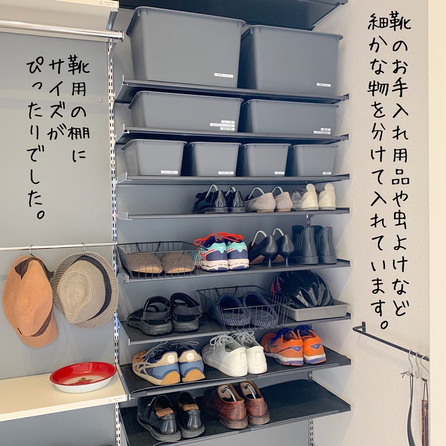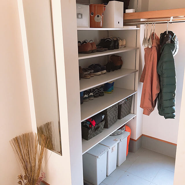 可動棚を設置し、効率の良い玄関収納を実現。クローゼットでも活かせる壁面収納 noboさんHOUSTO おウチの収納.com。
