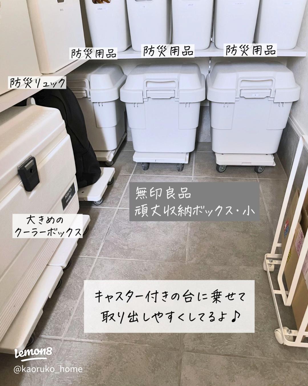 シューズクロークに置いてる無印良品の頑丈ボックス。 畑仕事の道具や防災アイテムなど、重たい物が沢山入っていていつも退かせて掃除するのが億劫でした💦ボックスの他にも防災用の水とかにも欲しいけど、台車って結構いいお値段でいくつも買えないんですよね。 という。