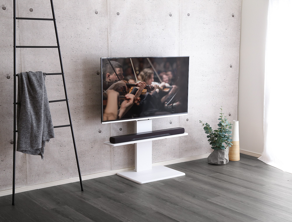 本体別売り テレビ台 壁掛けテレビ風 テレビスタンド 壁寄せテレビスタンド おしゃれ 五面体デザイン 高さ調整 スイング機能 専用サウンドバー棚板単品テレビスタンドはWALL~ V3EQUALS イコールズ。