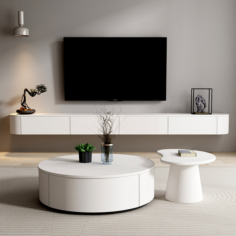 バックパネルにスイングアームが付いた高級感のある壁掛けTVボード。