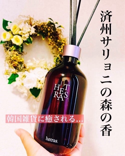 Room fragrance🌿 @hetras.official.jp ずっと気になっていて 韓国で購入したお気に入りのルームフレグランスボディクリームもとっても良くて愛用中🤍 今回は別の香りを。♡Jeju Saryeoni Forest済州サリョ二林道は済州の静かなサリョニ森の道で感じられる。