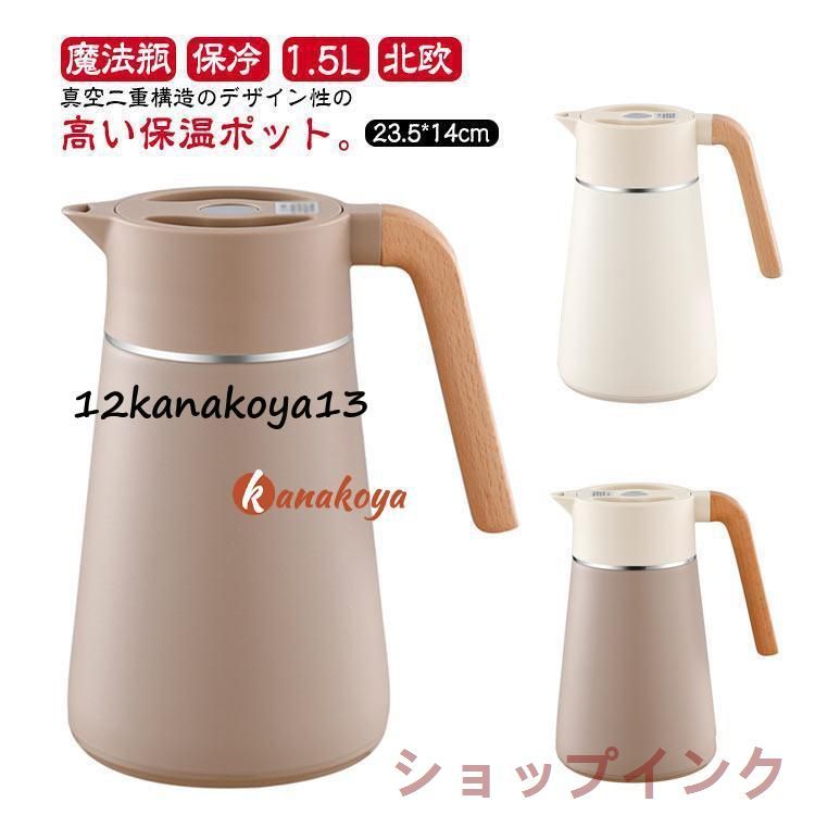 魔法瓶 サーモジャグ サーモ ポット 保温 保冷 おしゃれ 木製ハンドル 旅行 アウトドア 家庭用 業務用 タンブラー 4色 1.5リットルステンレス魔法瓶 保温ポット 卓上ポット 大容量 真空断熱 シール漏れ防止 ワンクリック出水 長時間保温 4color 徹底比較 卓上ポットの。