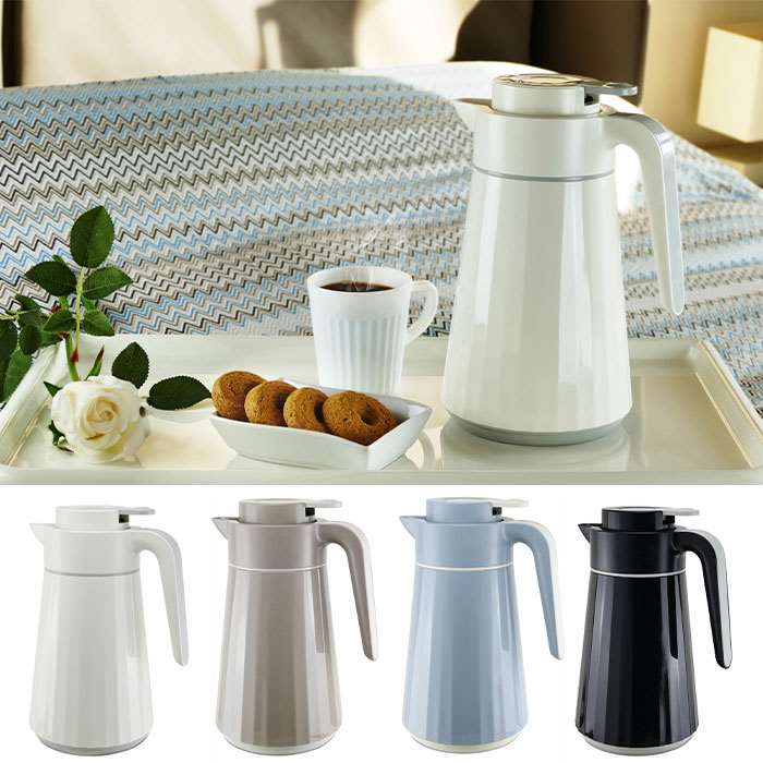 即納 enjoy リフレッシィ 保温・保冷ポット 1L おしゃれ ポット 保温 保冷 1L 1リットル シンプル かわいい デザイン 北欧スモーキーカラー ジャグ ガラス ケトル 人気 海外ブランド おすすめ 食卓 小ぶり 小さめ コンパクト 贈り物 ギフト-キレイスポット。