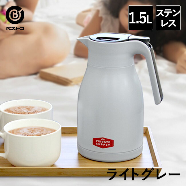 卓上ポット 保温 1.5L ライトグレー保温ポット おしゃれ 水筒 ポット 魔法瓶 コーヒー ステンレス アウトドア ティーポット 卓上保冷ポット お茶 ジャグ 新生活 保冷保温 ステンレスジャグ おうちカフェ 紅茶 保存容器 ステンレスポット コーヒーポット テーブル。