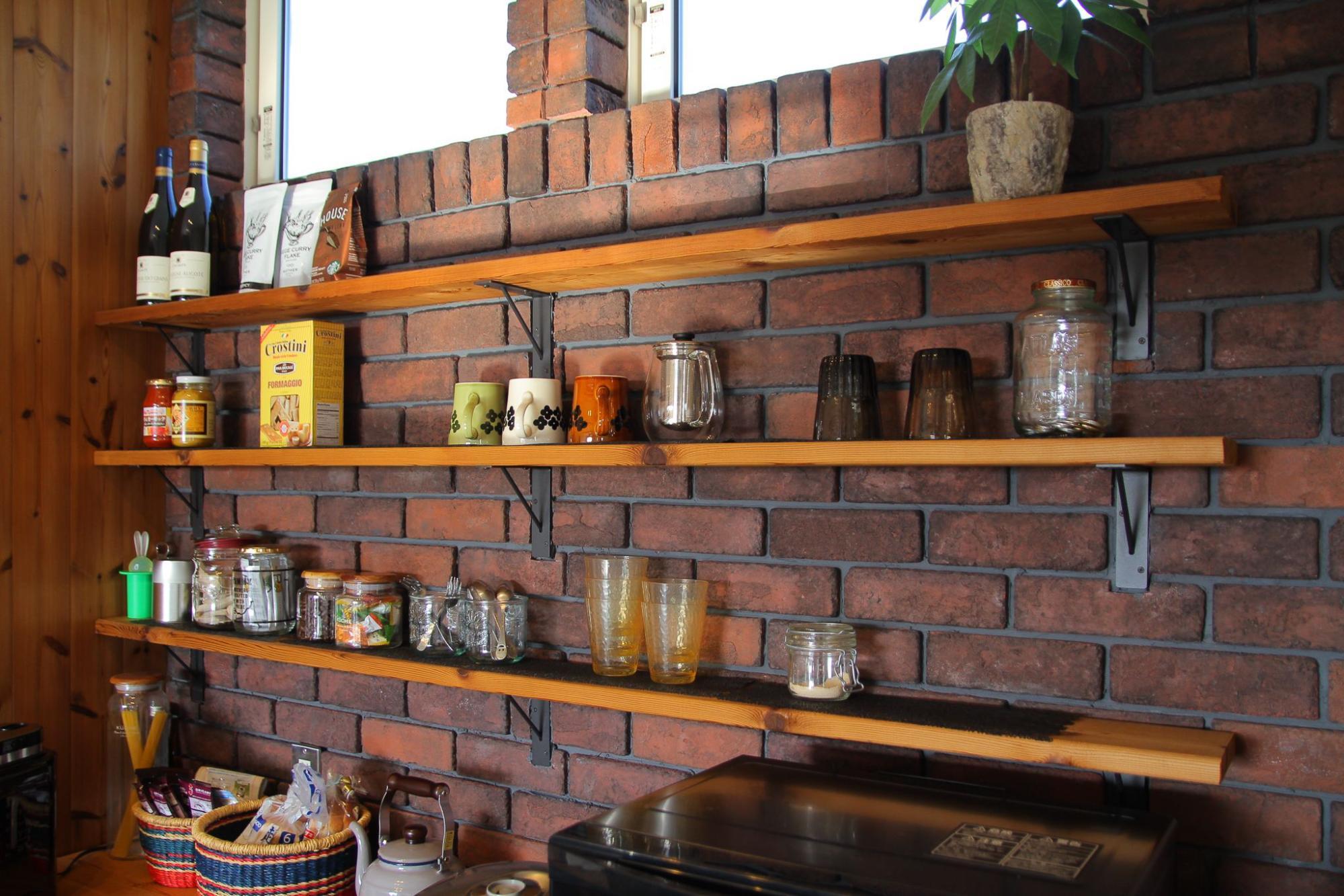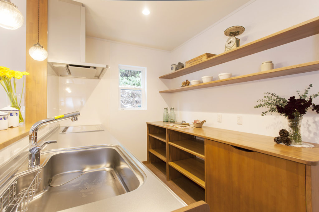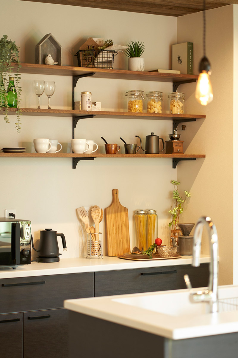 キッチン背面カウンターに棚・取付 完成見学会岡山・倉敷の木造注文住宅。
