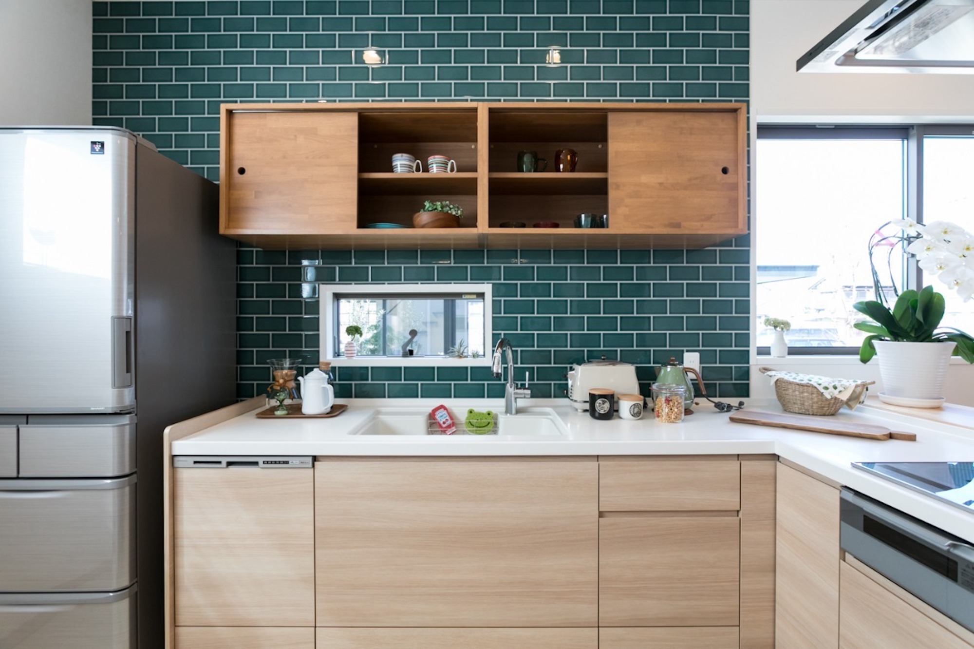 システムキッチンの奥行き20cm背面収納の活用例 - RE -アールイ。