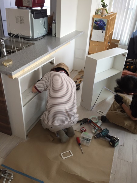 キッチンカウンター下背面収納 手元を隠すカウンター仕様へ札幌オーダー家具工房 工場直営店。