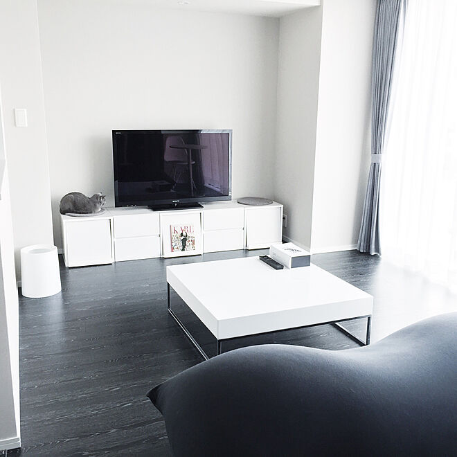 ミニマリスト向け 一人暮らしのリビングをモノトーンコーディネート。